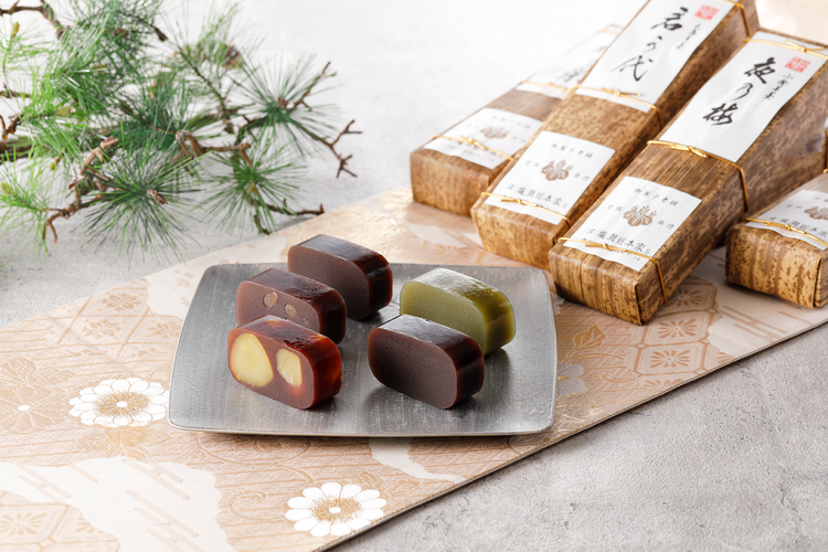 江戸時代より塩瀬に存在し昭憲皇太后にも絶賛された夜の梅に始まり、本練り、抹茶、黒糖、栗の5種類のお味をお楽しみください。一口サイズの小型「姫羊羹」、スタンダードな「中型羊羹」、竹皮に包まれご贈答として最適な大型「特製羊羹」まで各種大きさを取り揃えております。