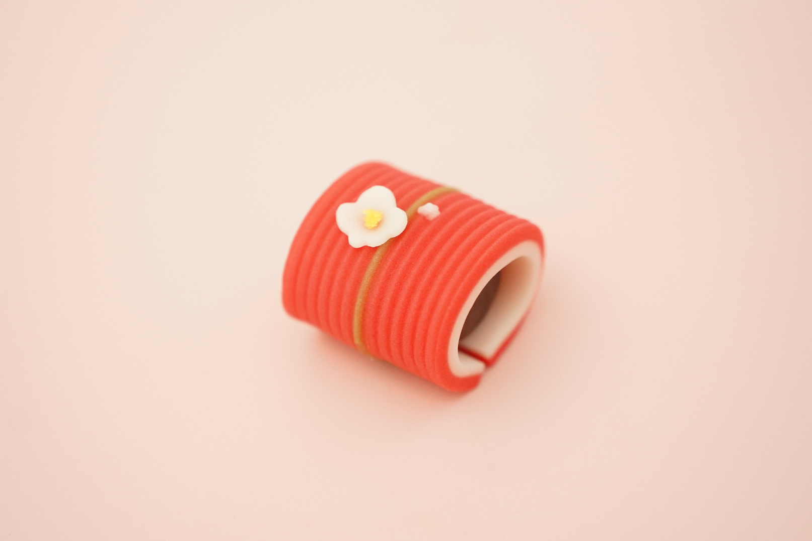 寒中、他に咲く花のない中で細枝の先に咲くのは、一輪の梅の花。その梅の花の色、香りからやがて訪れる春の暖かみが感じられます。塩瀬の「梅一輪」はそんな情景を思い浮かべて名付けられた、絵画のような一品です。